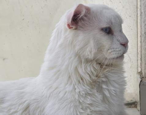He has recently been groomed and cared for, and during his time in foster it was noticed that he may be deaf or have very limited hearing. He also has a folded ear due to a previous surgery done before he arrived in Dubai, although no further details are available.